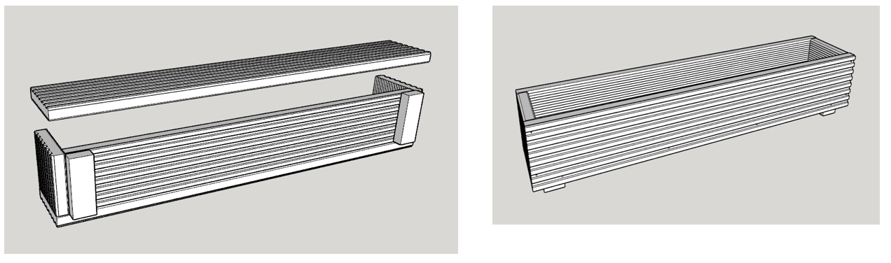 The window box comes with the feet already attached to the floor section. Note the holes in the floor section for drainage purposes.